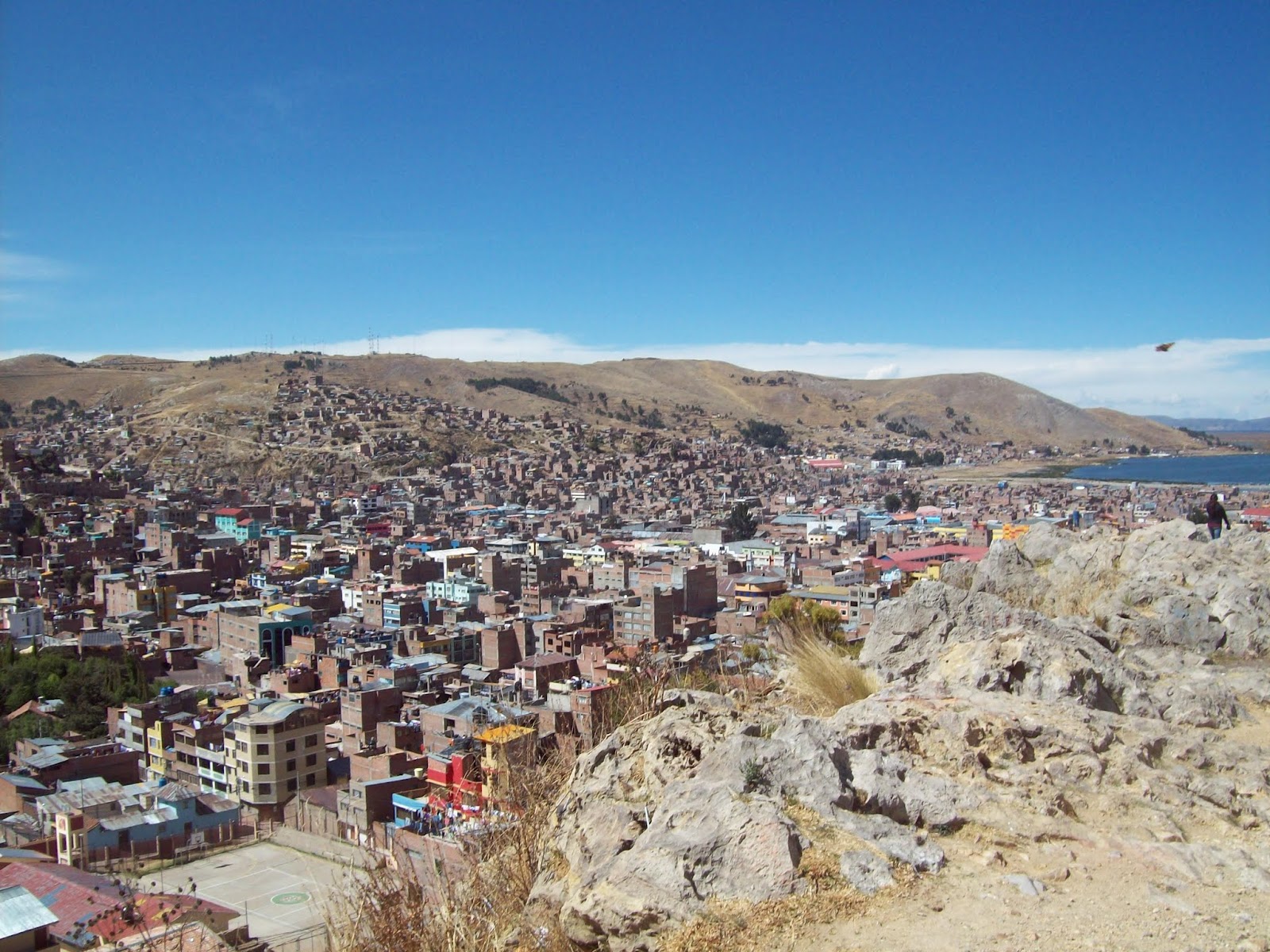 We ate lunch at the hotel, and then we all got on the bus to begin our trip home. But we made some stops on the way. The first stop that we made was at a lookout over the city of Puno. Oh wow. That was cool! Look at this!!!