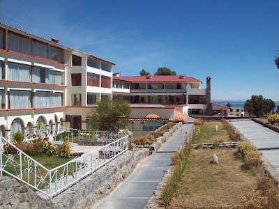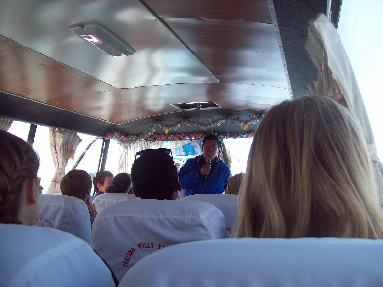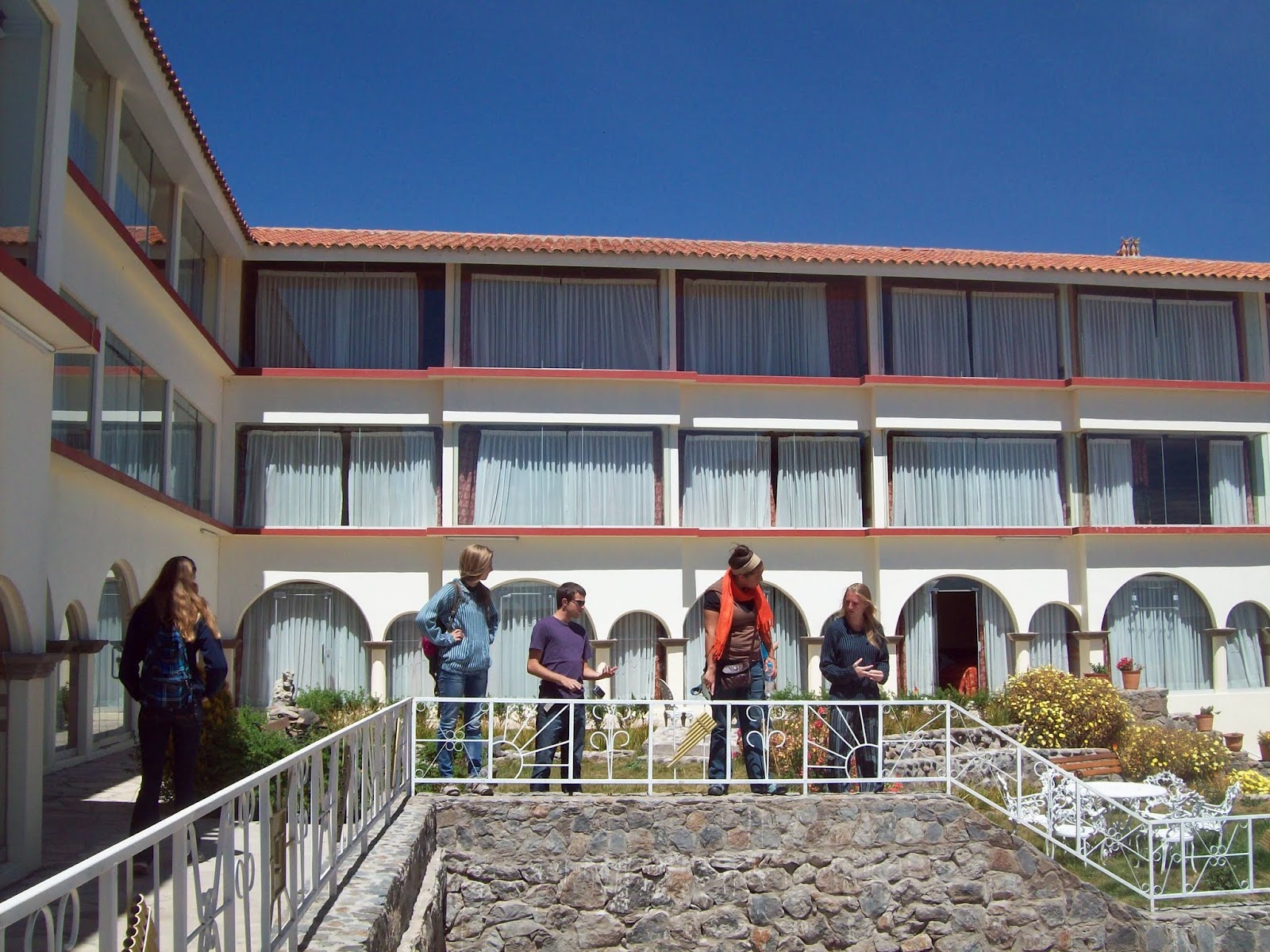 From the party, the Calvin crew boarded a tour bus and we headed west to Puno. This was a seven hour bus ride, so we watched Lion King and Lion King II in Spanish. We arrived at the hotel in Chucuito (close to Puno) around 1 AM and collapsed into our beds. I stayed in a room with Sydney and Amy. It was a really nice hotel, right on the shores of Lake Titicaca.