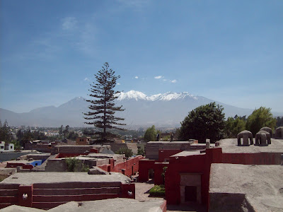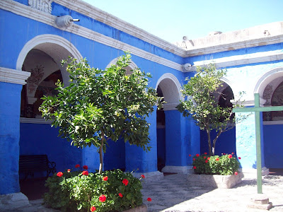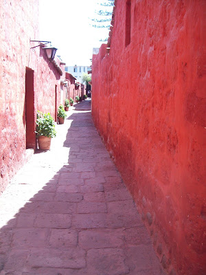 This morning, our whole group went to Santa Catalina. It is a convent that was founded in 1579. We took a tour, and it was fascinating. The place is huge--it is like a whole other city within Arequipa. When women went there to live, they were not allowed to ever leave.