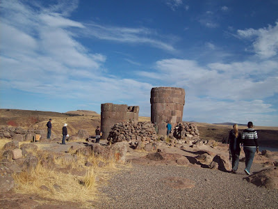 After spending lots of time at the lookout, we got back in the bus and headed to Sillustani. Sillustani is a place where there are lots of very large circular stuctures made of rock. These are ancient tombs from pre-Incan times. That's a long long long time ago. These structures were all over! There were tons of them! And the view was spectacular. God is really really amazing!!