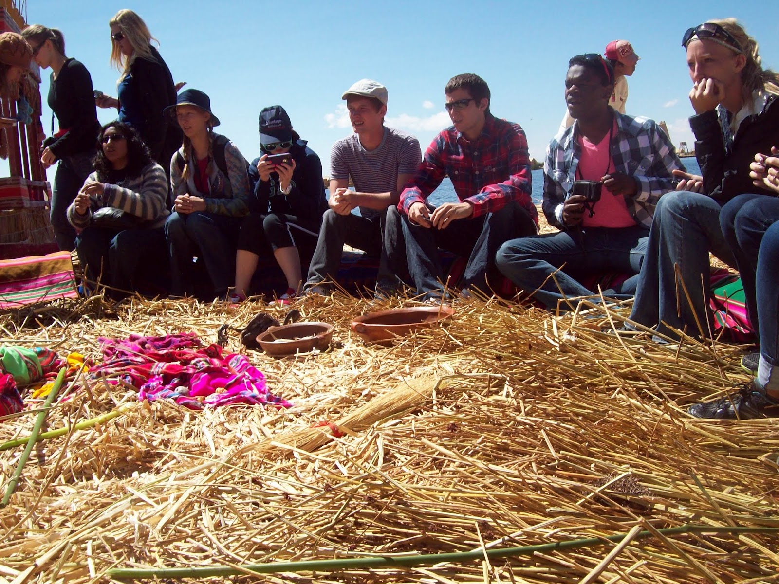 | Here we are on the floating islands! The island is made of the straw-like stuff that you see. |