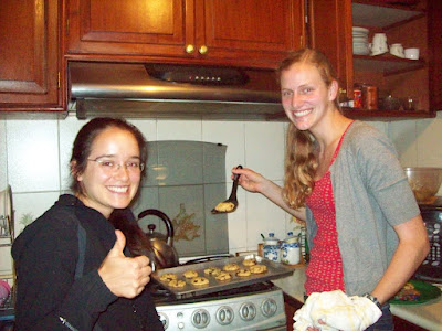 The first step to making chocolate chip cookies involved purchasing a few ingrediants, such as chocolate chips. Sydney, Amy, and I, after visiting two different grocery stores, came to the conclusion that chocolate chips are not very common here. There weren't any. So, instead we settled for a a few bricks of semi-sweet chocolate.