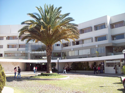 | This is the backyard at the university! There are always lots of students out here, playing volleyball or sitting in the shade with friends. |