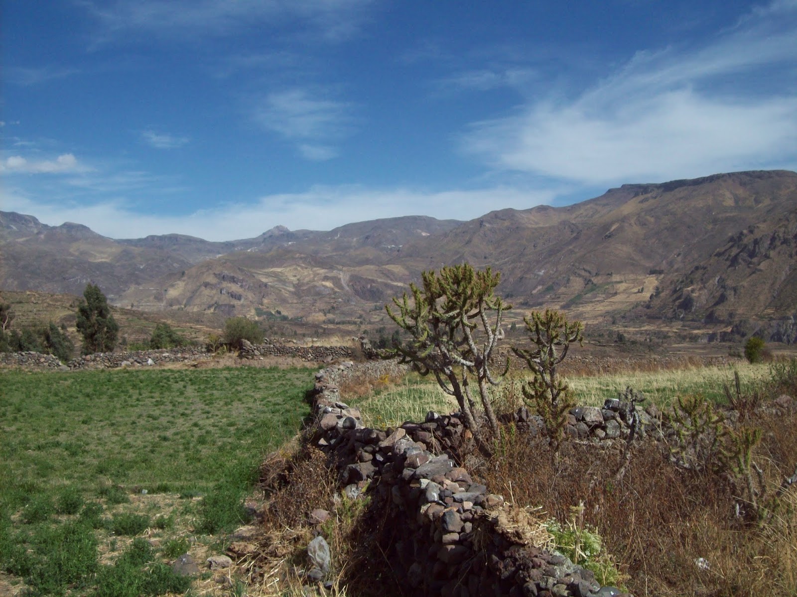 After this awesome bus ride, we arrived at our hotel near the Colca Canyon. Fuller and I shared a room, and we all checked in when we got there. After check-in, we ate lunch, which was a buffet provided by the hotel. We all enjoyed this a lot--it was really good food!! After our lunch, we took a short hike with our guide. From the hotel, we walked up to a high rocky place where we could see a good bit of the valley. It was so pretty!!!