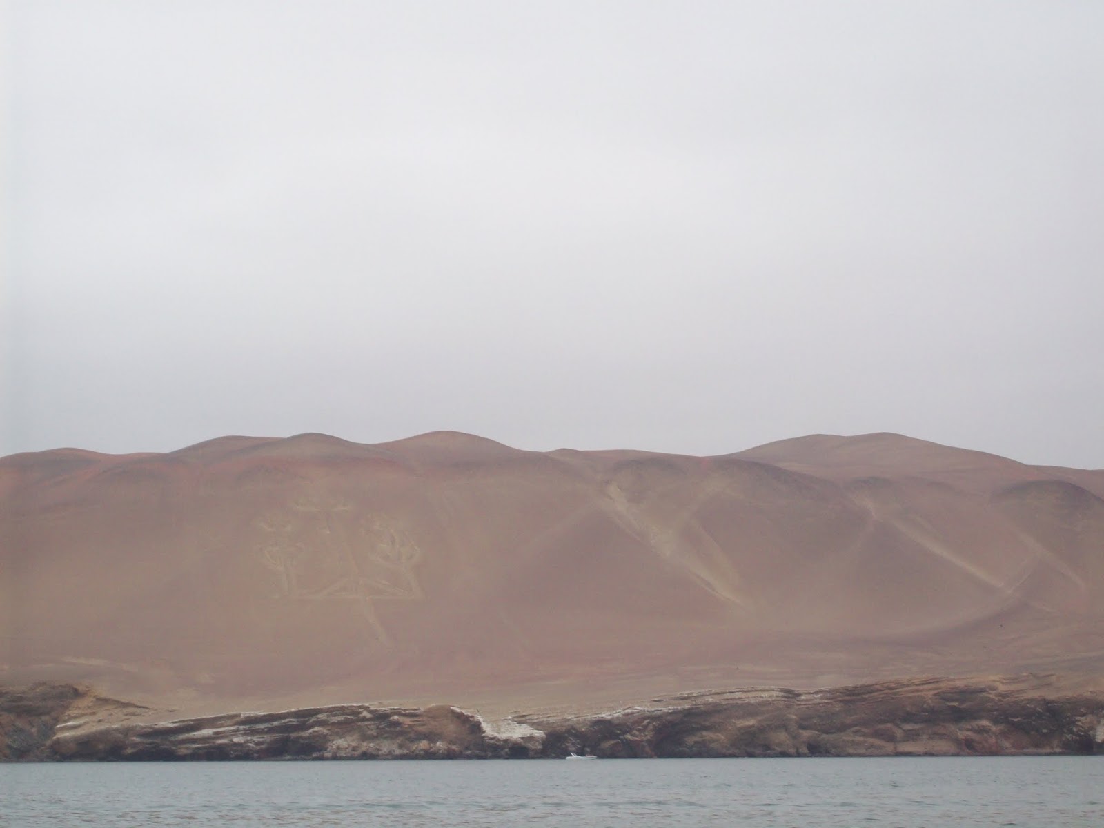 | Look closely at this picture. Just left of center, there's a candelabra! This candelabra was carved into the desert by people from the Paracas culture, a pre-Incan society. |