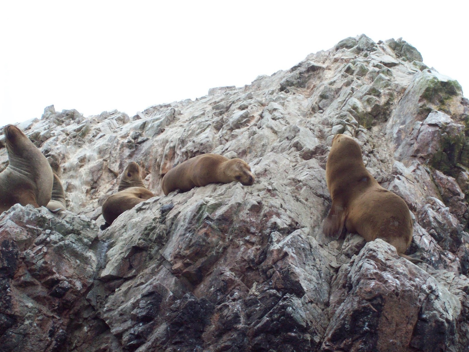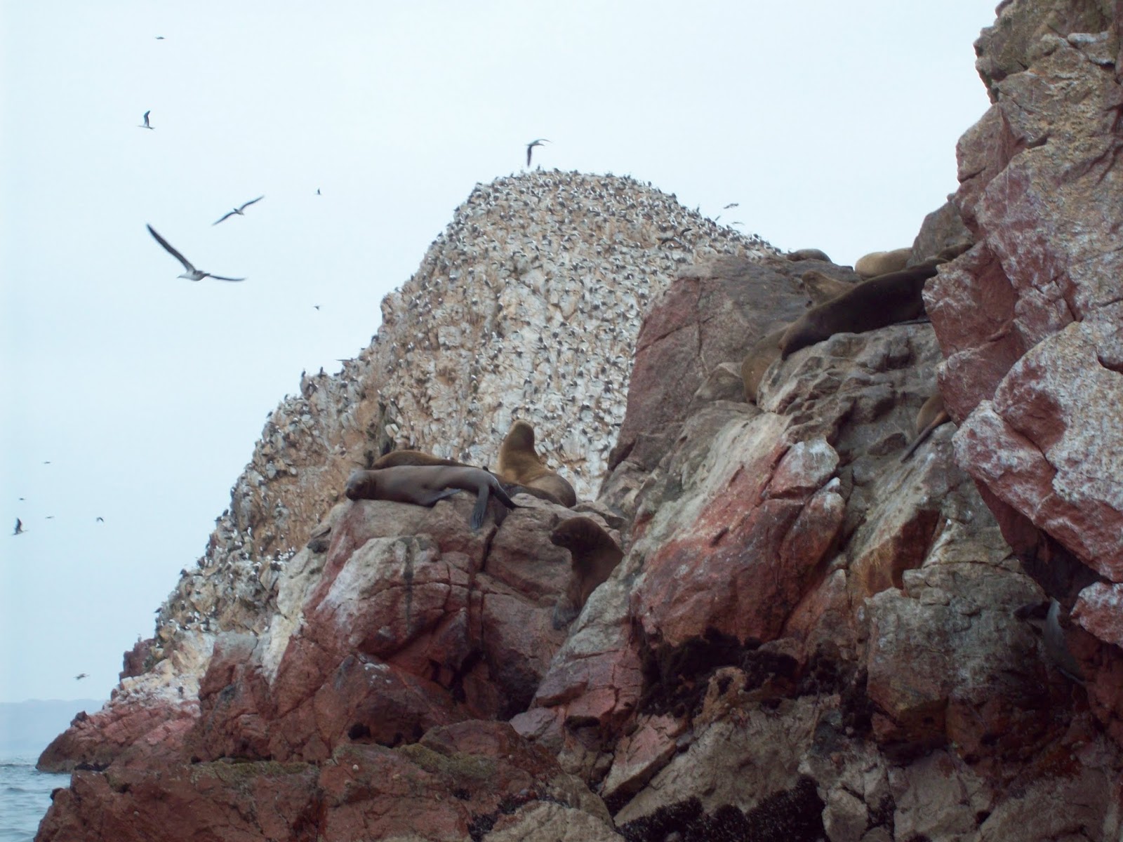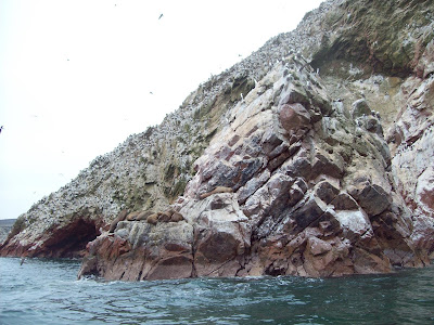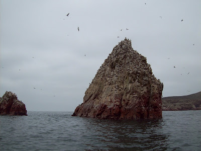Friday was a great great day! Oh man! We got up and got on a boat in the Pacific Ocean! It was wonderful! Here's the deal: not far from Paracas are the Islas Ballestas. These are sort of uninhabited islands. They are uninhabited by humans, but very much inhabited by birds and starfish and sea lions!! So we took a boat there and saw some awesome things! Look!