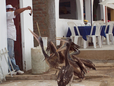 | Here's one of the restaurants in the fishing place. Pelicans are cool. |