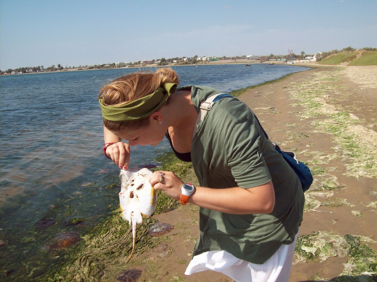 | We saw lots of dead wildlife. Here's Fuller with a dead stingray! |