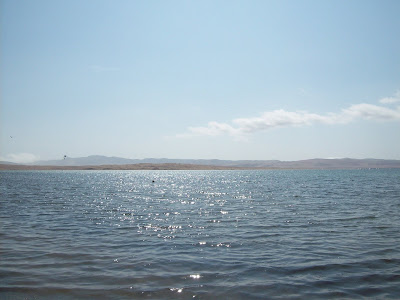 | See those three little things out in the water? THEY ARE FLAMINGOS!!! (And, they're alive!!!) I KNOW that they are flamingos. You can't really tell in this picture. You just have to believe me. I couldn't get a closer picture because they left, but those were most definitely flamingos!! |