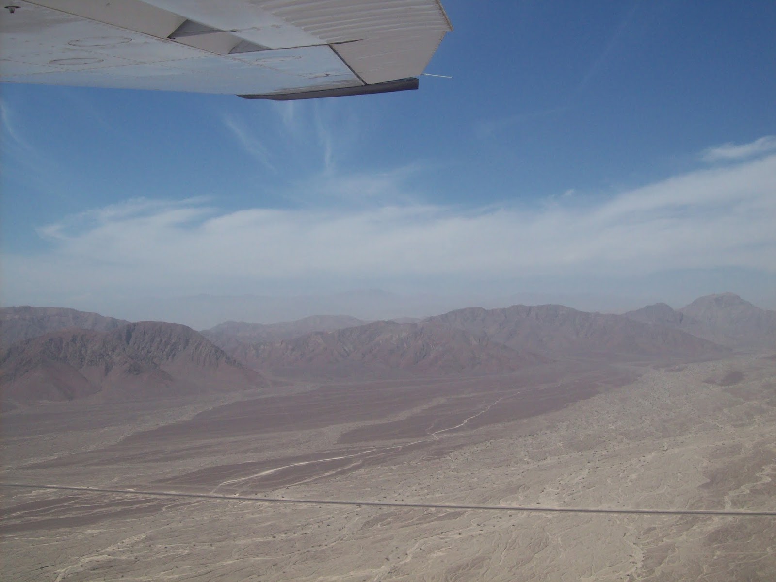 Another thing that I should really mention about the Nasca Lines is that the plane is very very shakey. Oh man. Every time we fly over one of the designs, the plane tips sideways about 90 degrees so that you can see the designs right out the window. And the plane does a lot of really sharp turns and frequently falls and rises and jerks all over. It was a 30 minute flight, and that is a very very good thing, because all four of us were feeling pretty motion sick. But, I'm the only one who threw up!! Yes, I threw up over the Nasca Lines!! It was... terribly unpleasant. But don't worry - it was still worth it. And it didn't prevent me from taking pictures!!