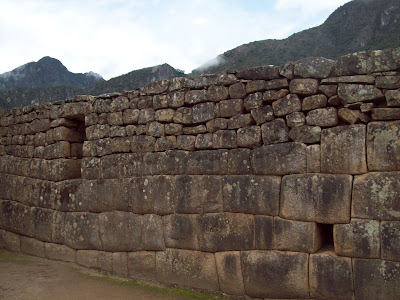 Okay, before I post some more Machu Picchu pictures, I should tell you about this place. Oh man! Okay, so the Incans built this place a long time ago. How long ago? Well, the Incan Empire lasted from . The people who lived here evacuated while the Spanish were destroying Ollantaytambo, and the Spanish never discovered the trail to Machu Picchu. And, at the beginning of the 20th century, a fellow named Hiram Bingham "discovered" Machu Picchu. I say "discovered" because he didn't actually truly discover it. Local people knew about it, and there were actually some people living there, but the rest of the world had no idea that it existed. Hiram Bingham was looking for a city of gold when he "discovered" Machu Picchu. A little boy in a nearby town told him that there is no city of gold, and he offered to take him to see Machu Picchu. Hiram Bingham eventually did some excavations at Machu Picchu and took thousands and thousands of pieces of pottery and stuff to Yale to put on display. Technically, the stuff belonged to Peru, but the president of Peru had a son who wanted to go to Yale, so they made a little deal: President's son gets to go to Yale, and Yale gets lots of Incan antiques. But in the past few years, Yale has returned the entire treasure to Peru.