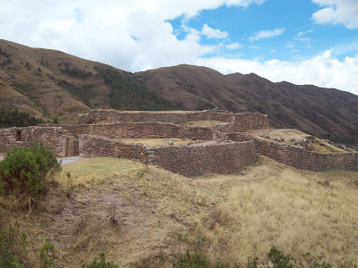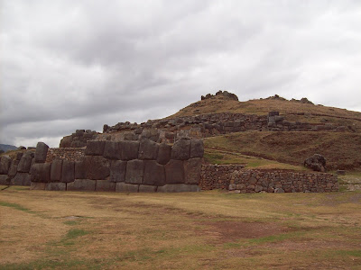 By the time we got back to Cusco, we were all quite tired. It was getting late, but I went to a restaurant with Amy and Sydney and ate a really great pizza! And then we went back to the hotel and slept. The next day, we got up and went to Saqsaywaman, which are some Incan ruins very close to the city of Cusco. This place was a religious place for the Incans, and quite a bit of it was destroyed by the Spanish. In fact, historians and people think that much of the structure is actually underground because the Spaniards came and covered a lot of it with dirt and ground.