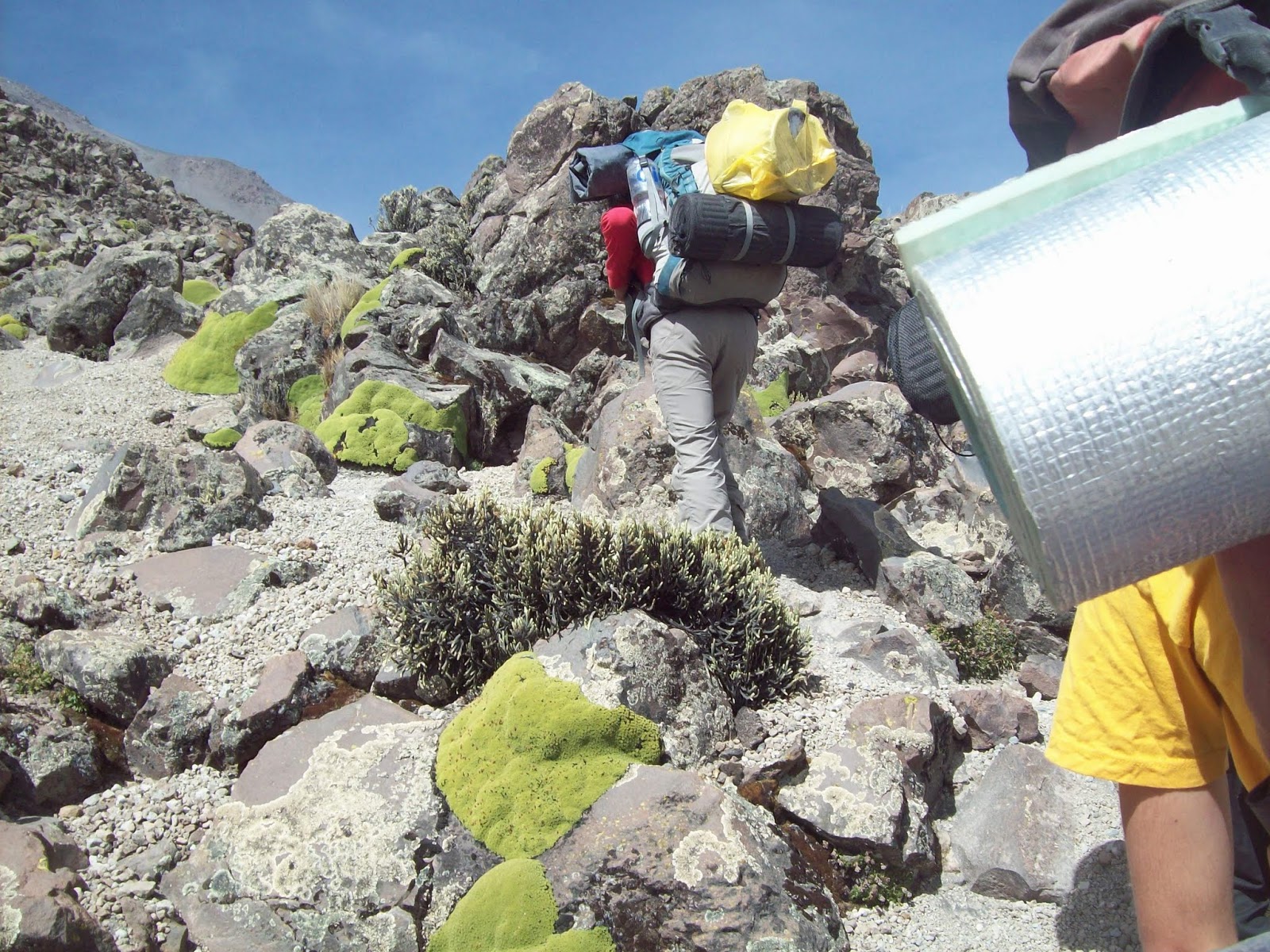 | And this is my backpack!! It was a bit heavy. It had to hold 5 liters of water (1.5 for cooking, 3.5 for drinking) , plus food and warm clothing and a sleeping bag. |