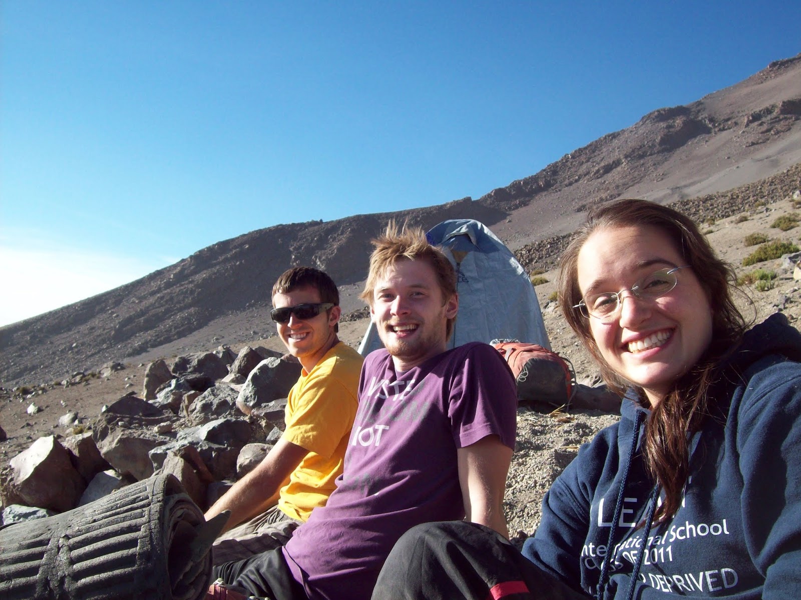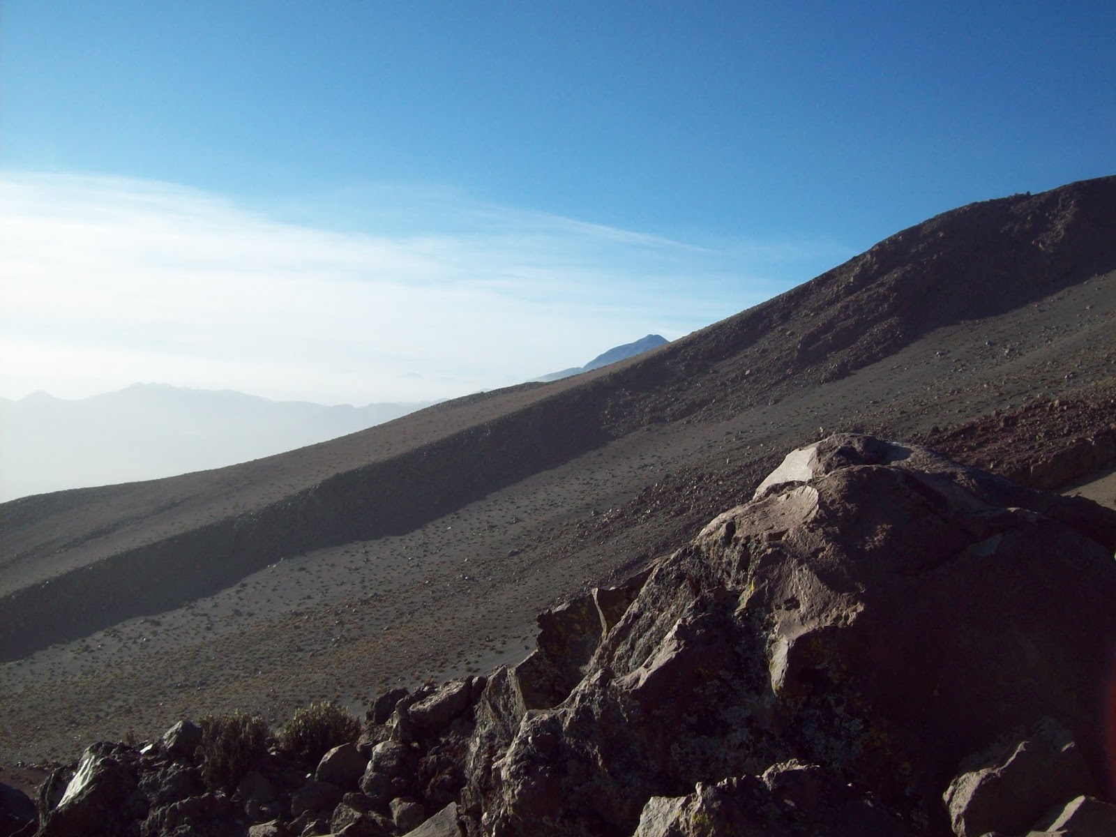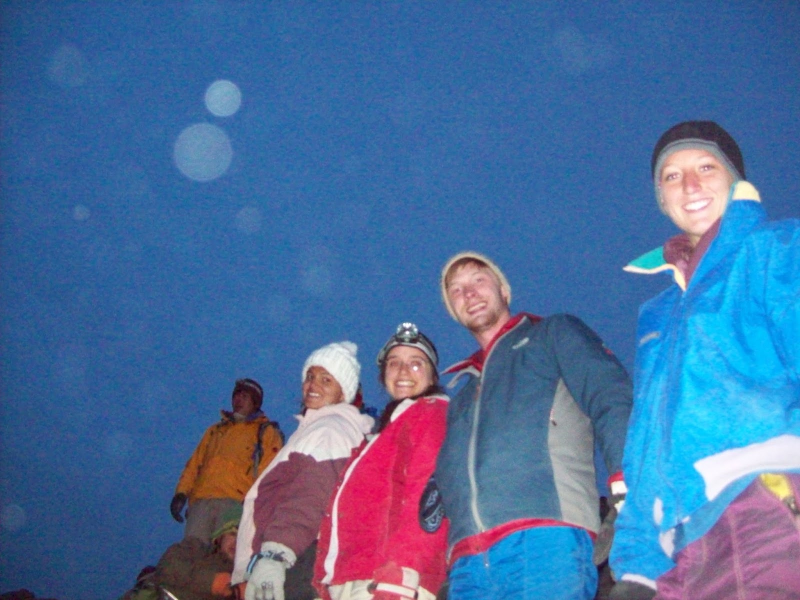 After dinner, we all went to bed. It was early, but it was dark out and quite cold. And we had to rise and shine at 1 AM to continue our ascent. 1 AM came, and we hadn't really slept much. The wind was loud all night, and I think that even though we were exhausted, we were super excited and couldn't sleep. We didn't have to bring our backpacks, today. We just left them at the camp and headed up the volcano. It is VERY good that we didn't need our packs. The climb this morning was even more intense than the first part. The path was incredibly steep, and the altitude made everything harder. We hiked for a few hours in the dark, by the light of our head lamps. We were all physically exhausted. But the sunrise was really pretty!!