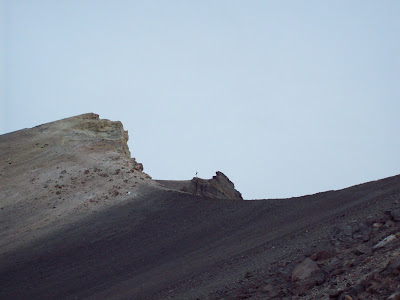 We arrived at the top of the volcano at 7 AM. Let's do some math here. We hiked about 6 hours on Saturday, and about 6 more on Sunday morning. That's a total of 12 hours to get to the top. How long do you think it took us to get down?