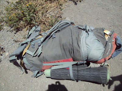 | And this is my backpack!! It was a bit heavy. It had to hold 5 liters of water (1.5 for cooking, 3.5 for drinking) , plus food and warm clothing and a sleeping bag. |
