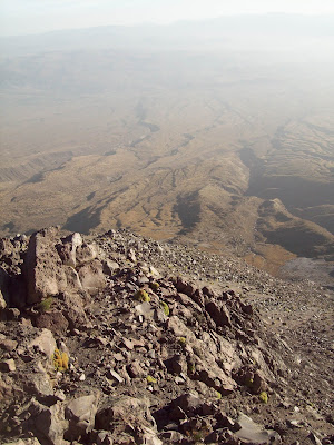 Instead of re-tracing our steps to get back to camp, we took a short-cut. Much of the face of Misti is sand. To get to the summit, we climbed up the rock part, because climbing up sand would be terrible. But going down sand... now that's quite easy. We literally ran down the volcano. It was like one huge sand dune, and we ran all the way to camp. It took us six hours to get from camp to the summit, but it only took us 30 minutes to run from the summit down to camp. Once we got to camp, we packed up our things and did some more running down a volcano, this time with our backpacks! At the very end, we had to scramble like mountain goats down parts of the trail that we had climbed up, but we ran down a majority of the volcano on the volcanic sand dunes.