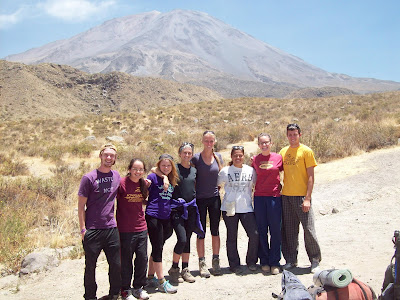 There are three volcanoes in Arequipa. How could we possibly spend four months living here and NOT climb one of them? The simple answer is... we can't let that happen. So, that's why I, along with 7 of my Calvin friends, climbed Misti yesterday and today!! That is also why I am currently covered in a fine coating of volcanic dust!!