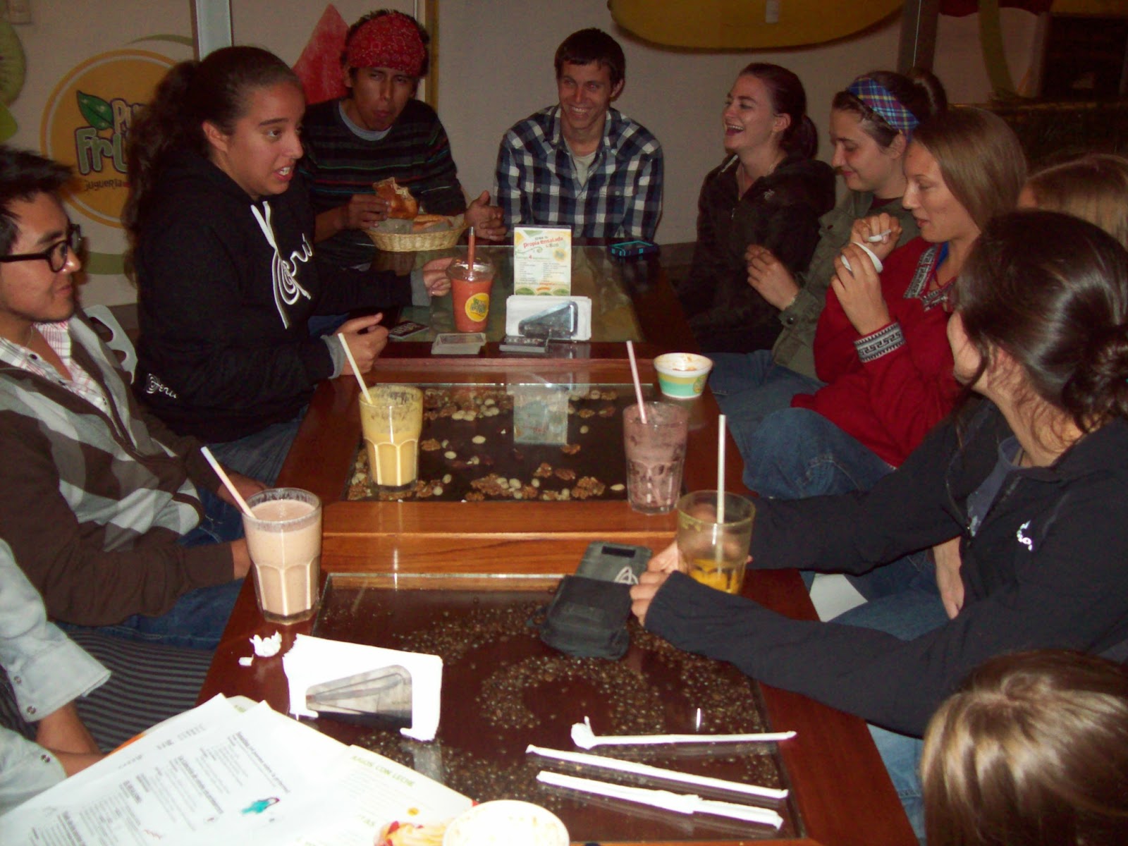 Here we are at Pura Fruta playing cards during the middle of finals week!!! Yay for no studying!!!!