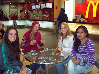 On Thurdsay evening, I went the the airport with Fuller, Lauren, and Sydney because Sydney's flight left a day earlier than the rest of us. We waited there for a few hours with her, and our dear friend Ana Flavia came!!! Her family lives in Lima, so we got to see her one more time before leaving the country!!! It was great to see her! We sat around and played card games for a while.